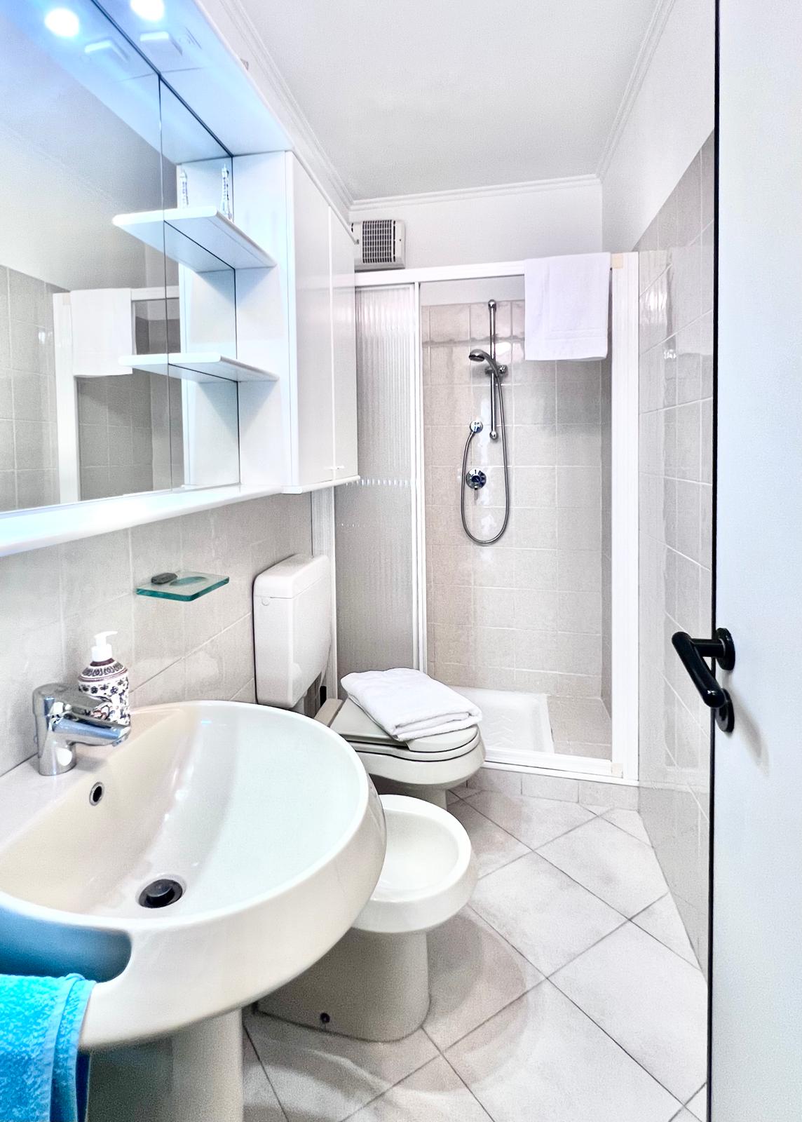 Con doccia, asciugacapelli con diffusore, lavatrice, stendibiancheria, set da stiro